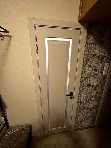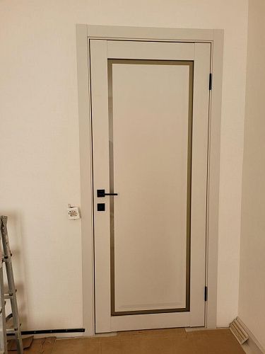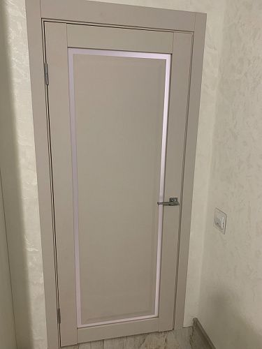 Дверь ПО Queen N23 Велюр светлый стекло белое из Экошпона COVERFLEX (Двери Нева) в Рязани