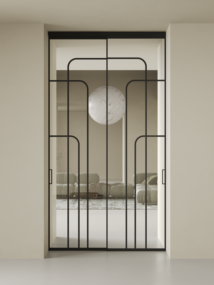 Купить дверь Diva 1 черная стекло осветленное с аркой 3 в Рязани